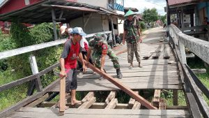 “Sebagai Babinsa, kami berkomitmen hadir membantu setiap kesulitan warga. Perbaikan jembatan ini sangat penting karena menjadi akses utama masyarakat Dusun Mekar Jaya,” ujarnya.