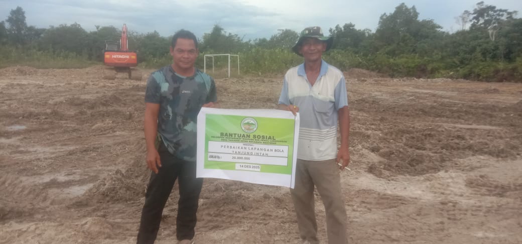 Melalui kegiatan gotong royong, warga bersama Kelompok Masyarakat Waspada dan Peduli Lingkungan Desa Tanjung Intan melaksanakan pembenahan lapangan sepak bola desa.