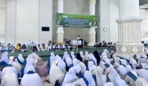 Suasana Halal Bihalal BKMT Sekadau di Masjid Agung Sultan Anum, diikuti ratusan jamaah yang khidmat menyimak tausiah.(Humas polres Sekadau)